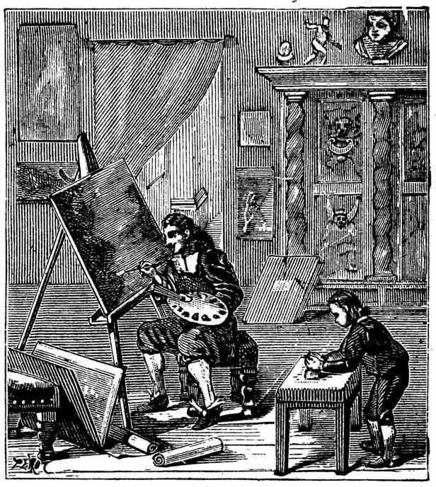 Gravure extraite du "Tour de la France par deux Enfants (G. Bruno)" FEMME DE LA LORRAINE BRODANT. - On appelle broderie un dessin tracé en relief sur un tissu avec du fil de soie, de coton, de laine, d'or ou d'argent. - Le métier de brodeuse est très fatigant pour la vue ; l'immobilité qu'il exige et la position assise sont également fâcheuses pour la santé. Il serait bon que les brodeuses eussent toutes un second état qui leur permît de temps à autre de se délasser du premier. |